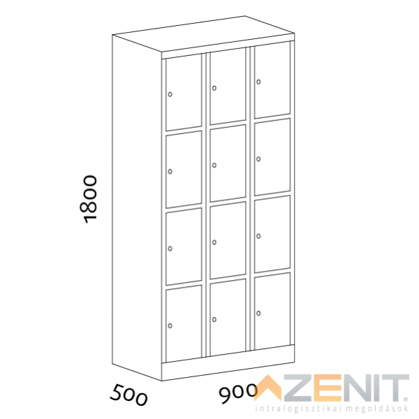 Értékmegőrző szekrény 12 rekeszes 5003/12 típus 1800x900x500 mm RAL 7035 szürke