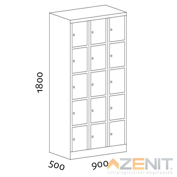 Értékmegőrző szekrény 15 rekeszes 5003/15 típus 1800x900x500 mm RAL 1015 krém
