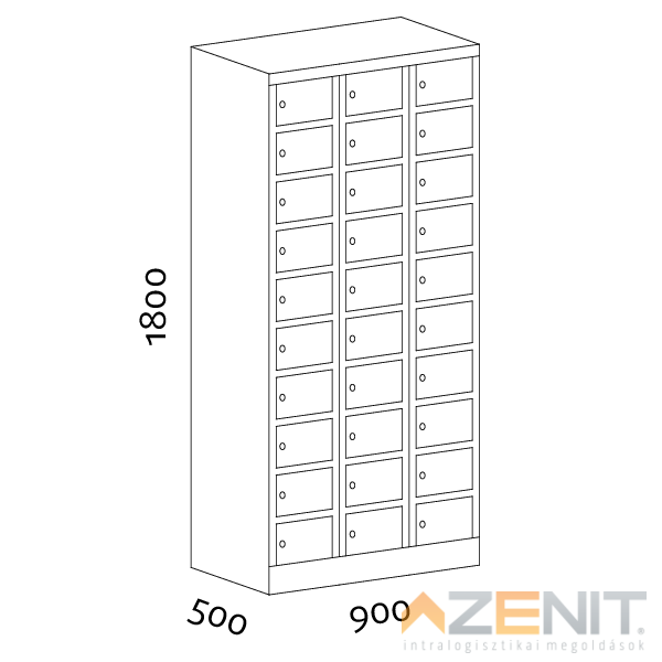 Értékmegőrző szekrény 30 rekeszes 5003/30 típus 1800x900x500 mm RAL 7035 szürke
