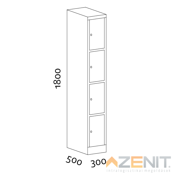 Értékmegőrző szekrény 4 rekeszes 5001/4 típus 1800x300x500 mm RAL 7035 szürke