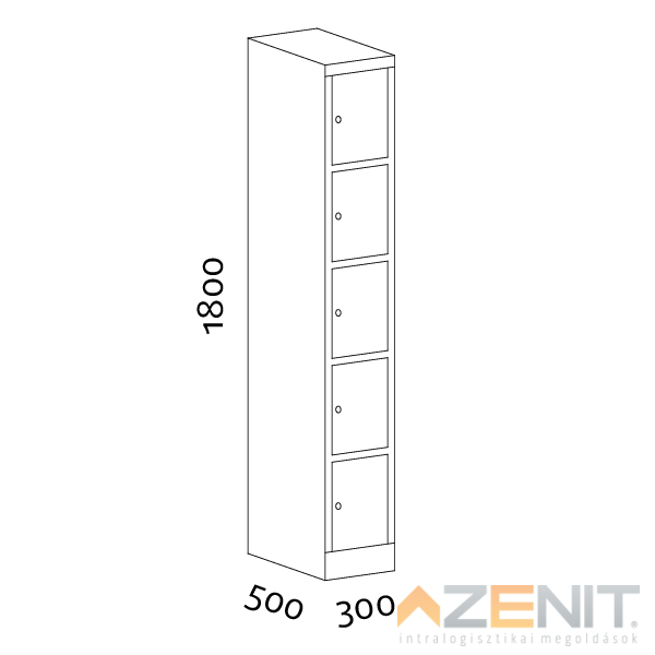 Értékmegőrző szekrény 4 rekeszes 5001/4 típus 1800x300x500 mm RAL 7035 szürke