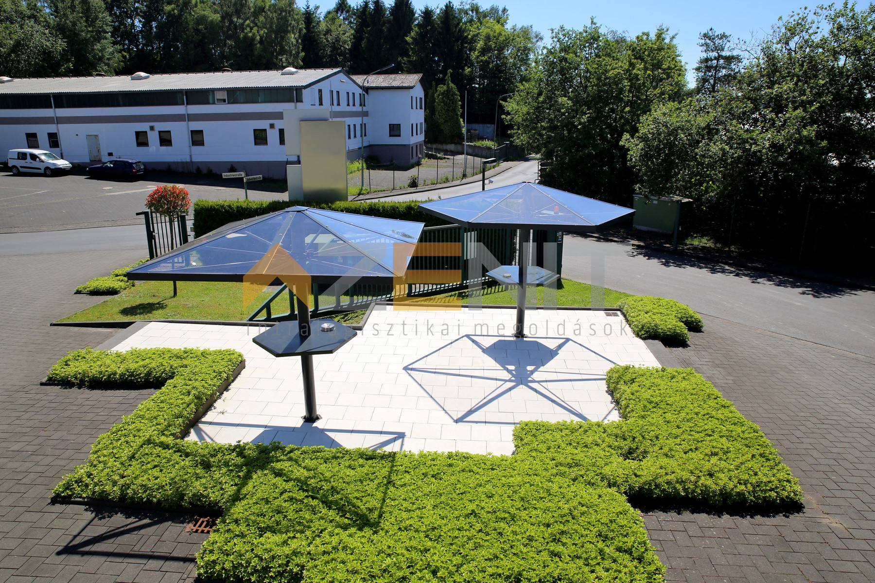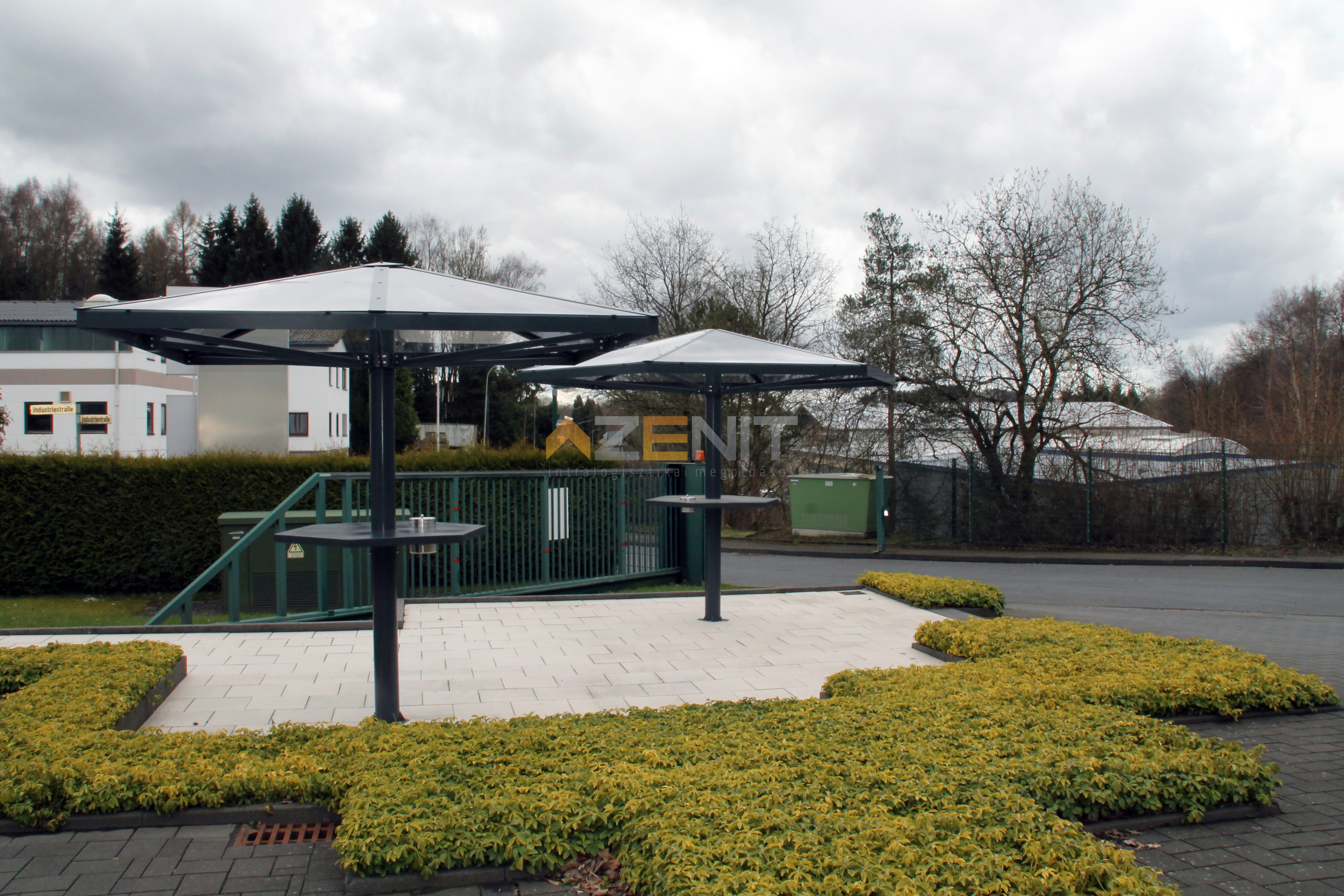 A Regensburg típusú fedett dohányzók kellemes szüneteket biztosítanak bármilyen időjárás esetén: amellett, hogy védelmet nyújtanak a nap és az eső ellen még jól is néznek ki! A hatszögletű piramis tető vonzza a figyelmet, megállásra hív. Ez növeli a nyitott terek értékét és karakterét éttermeknél, kiskereskedelmi üzleteknél vagy egyéb intézményeknél, vállalkozásoknál.