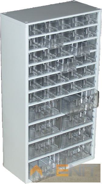 Hobby box 509 típus 555x300x145 mm 60 db kis fiók műanyag fiók festett váz