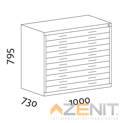 Rajz és térképtároló szekrény A1 típus 10 fiókos 1000x730x795 mm RAL 1015 krém