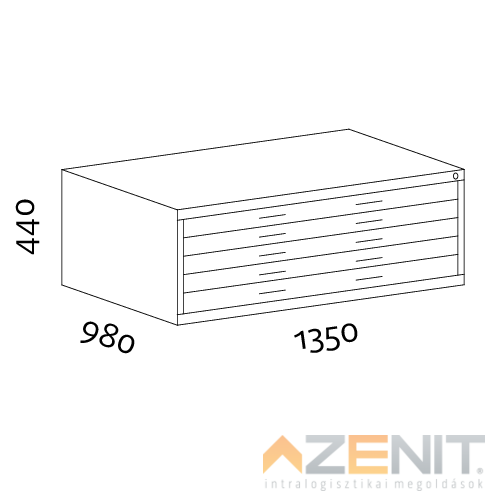 Rajz és térképtároló szekrény A0 típus 5 fiókos 1350x980x440 mm RAL 1015 krém