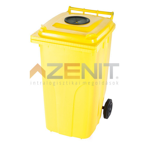 Mobil hulladékgyűjtő konténer 120 literes műanyag gyűjtésére alkalmas fedéllel sárga