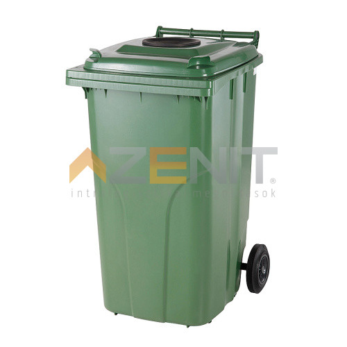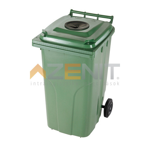Mobil hulladékgyűjtő konténer 120 literes üveg gyűjtésére alkalmas fedéllel zöld