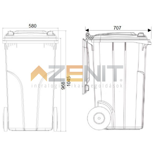 Mobil hulladékgyűjtő konténer 240 literes műanyag Standard fedéllel fekete