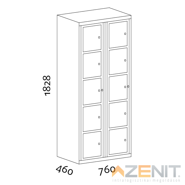 Kiadószekrény mosodai 1 oszlopos 10 rekeszes 5010 típus 1828x380x460 mm RAL 7035 szürke