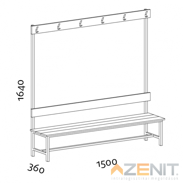 Öltözőpad lécezett háttámlás egyoldalas 1200 mm teljes magasságxmélység 1640x360 mm RAL...