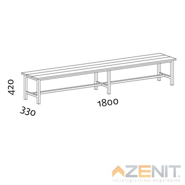Öltözőpad lécezett 1800 mm hosszú 420x330 mm RAL 7035 szürke