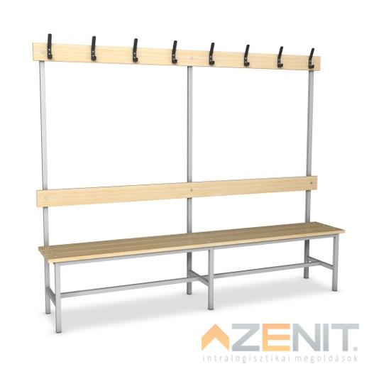 Öltözőpad lécezett háttámlás kétoldalas 1500 mm teljes magasságxmélység 1640x690 mm...