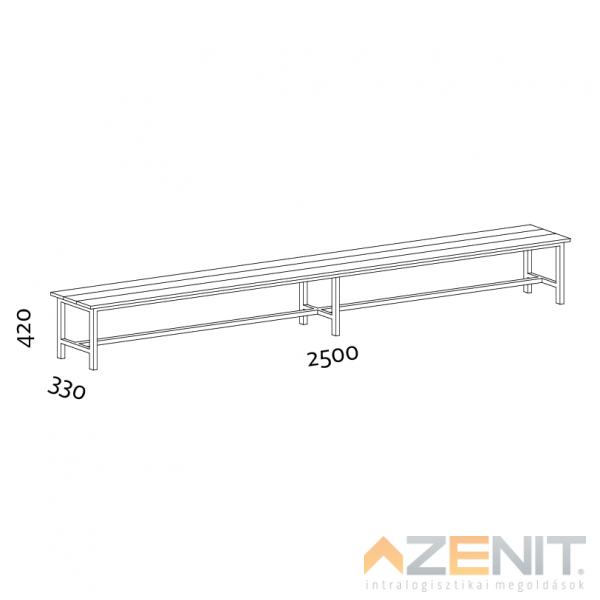 Öltözőpad lécezett háttámlás kétoldalas 2500 mm teljes magasságxmélység 1640x690 mm...
