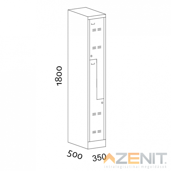 Öltözőszekrény fém 1 ajtós válaszfalas kivitel KS5001/400 típus 1800x400x500 mm RAL 1015...