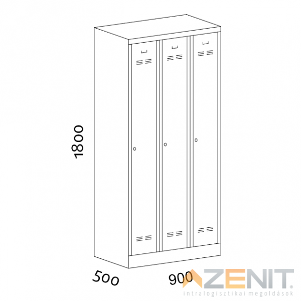 Öltözőszekrény fém 3 ajtós válaszfalas kivitel KS5003/400 típus 1800x1200x500 mm RAL 7035...