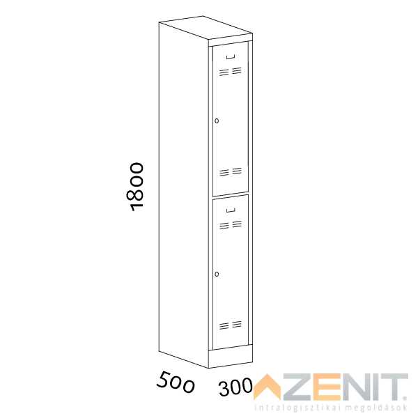 Öltözőszekrény fém hosszú 2 ajtós KS5002 típus 1800x600x500 mm RAL 7035 szürke