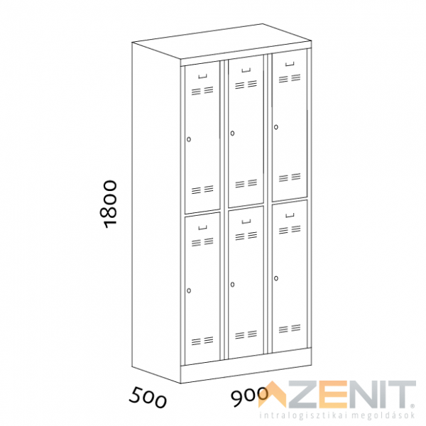 Öltözőszekrény fém osztott 6 ajtós KS5003/6 típus 1800x900x500 mm RAL 1015 krém