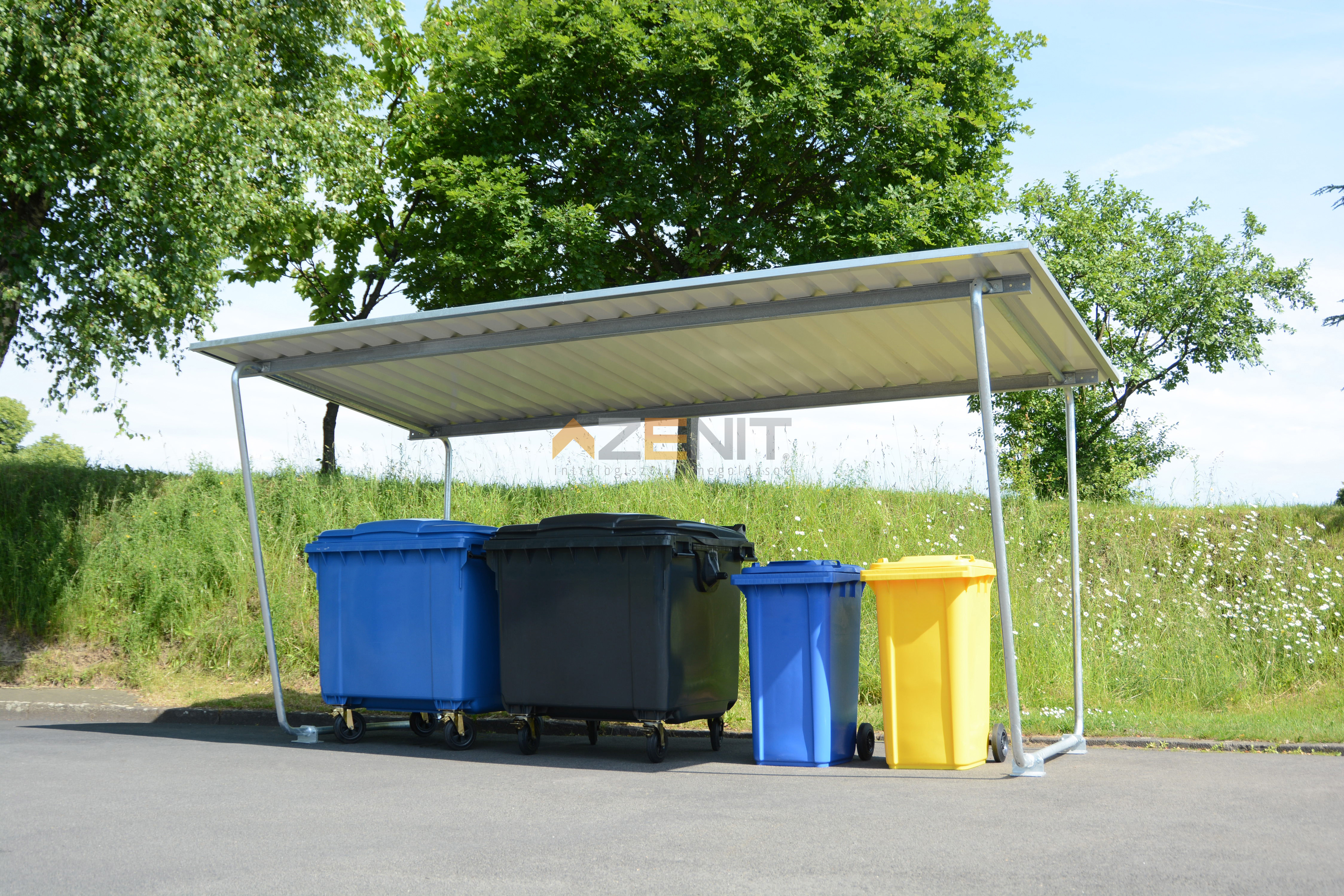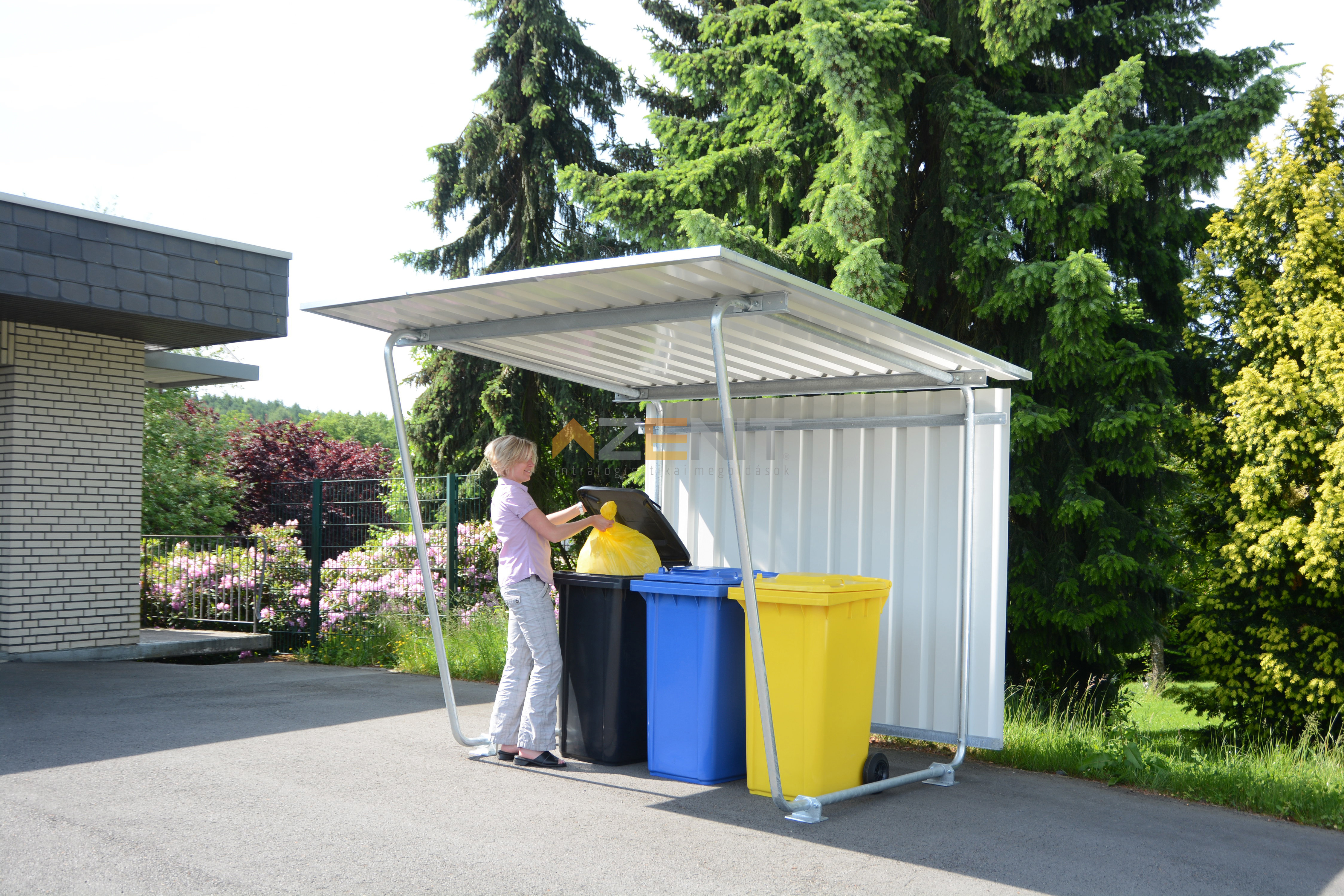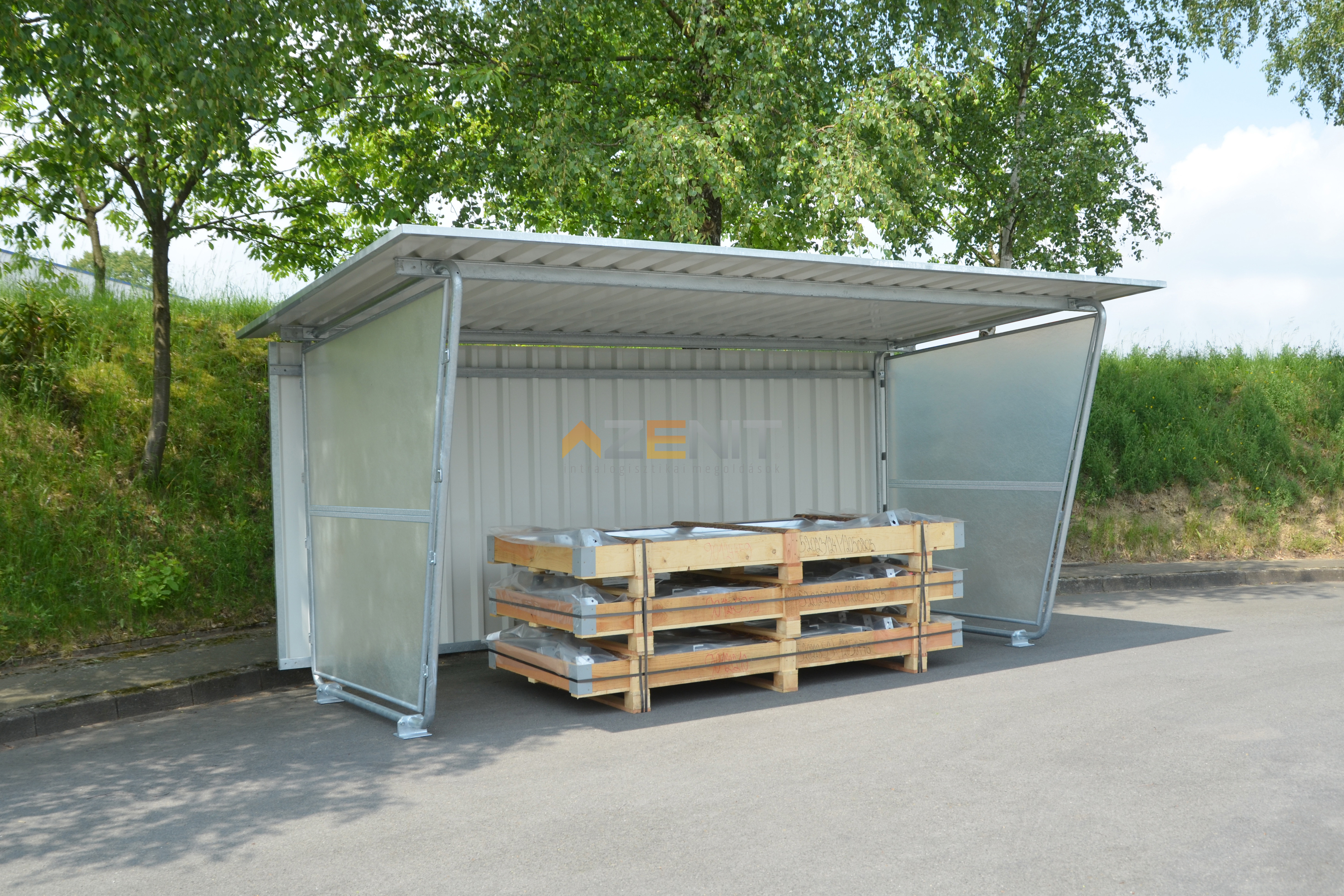 A Siegen típusú fedett tárolók sokoldalúan felhasználhatóak hulladékgyűjtő edények, raklapok, készáruk és az igényekhez igazodva számos egyéb esetben biztonságos, időjárásvédett tárolásra. Az alap-, és toldalékegységek, valamint a trapézlemezből készült hátsó és oldalfalak számos kialakítási lehetőséget kínálnak. A tetőszerkezet az esővizet hátrafelé vezeti.